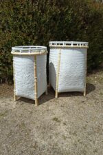 Corbeille à linge décorative réalisée entièrement à la main. Un objet de décoration et de rangement esthétique multifonctions , vous pouvez y poser tout : linge sec ou mouillé , jouets.. Libre cours à votre imagination, elle ajoutera charme et beauté là où vous la placerez.