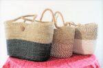 Couffin Cabas en matières naturelles fait entièrement à la main, un objet de rangement esthétique que vous pouvez emmener partout, balade, plage,courses…le sac est doublé d’un tissu avec un cordon servant de fermeture.