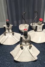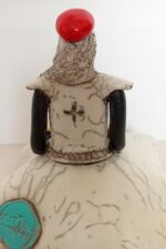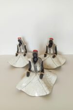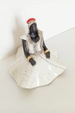 Sculpture de danseuse – musicienne en RAKU fait main . Jrainia est le nom donné anciennement aux musiciennes bizertines, des troupes musicales féminines spécialisées dans l’animation de soirées d’enterrement de vie de jeune fille en Tunisie. A offrir ou à collectionner La sculpture représente une jeune danseuse qui tourne en toute grâce devant ses admiratrices( soirée entre copines)