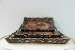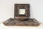 Grand plateau marron en bois sculpté fait entièrement à la main. Objet de décoration multifonctions; vous pouvez vous en servir comme un présentoir ou encore le transformer en un joli tableau ou miroir grace à son cadre bien travaillé.