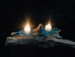 Double petits porte- bougies en verre soufflé sur racine de tek, une décoration qui ne passe pas inaperçue, très originale. Vous pouvez le décorer toujours autrement en mettant dedans des bougies , des bougies chauffe plat, , des fleurs séchées, des plantes grasses. Libre cours à votre imagination. Intérieur et Extérieur, idéal pour une déco intime et chaleureuse